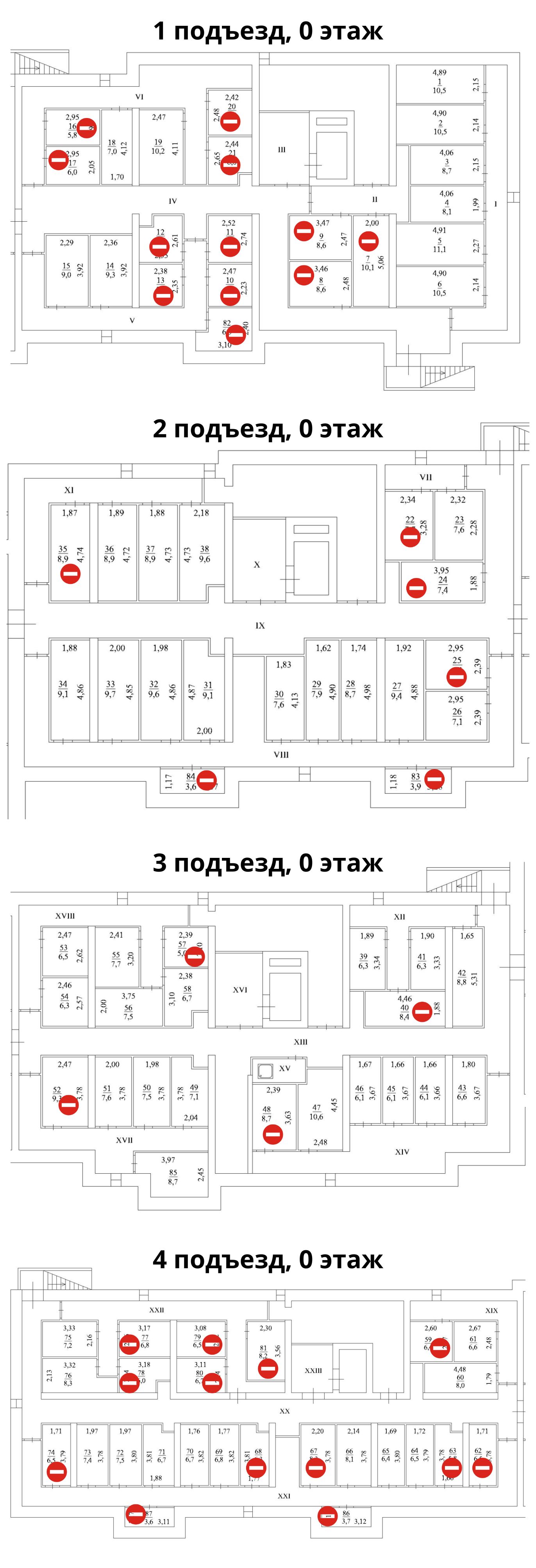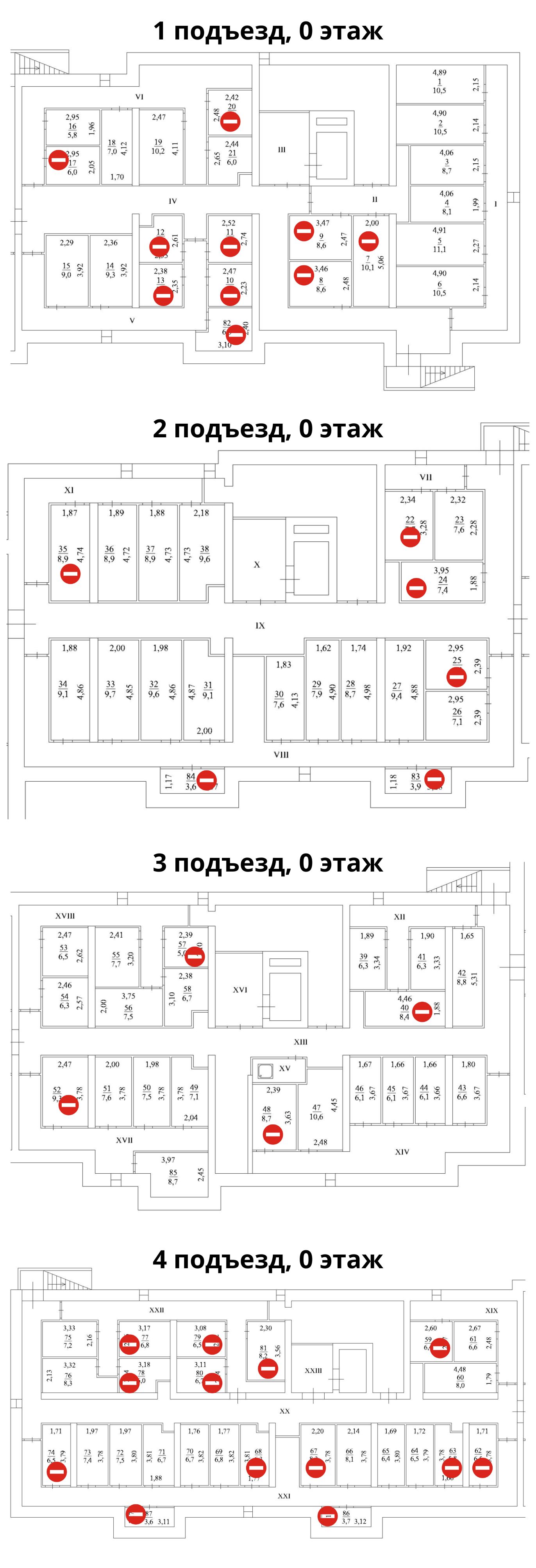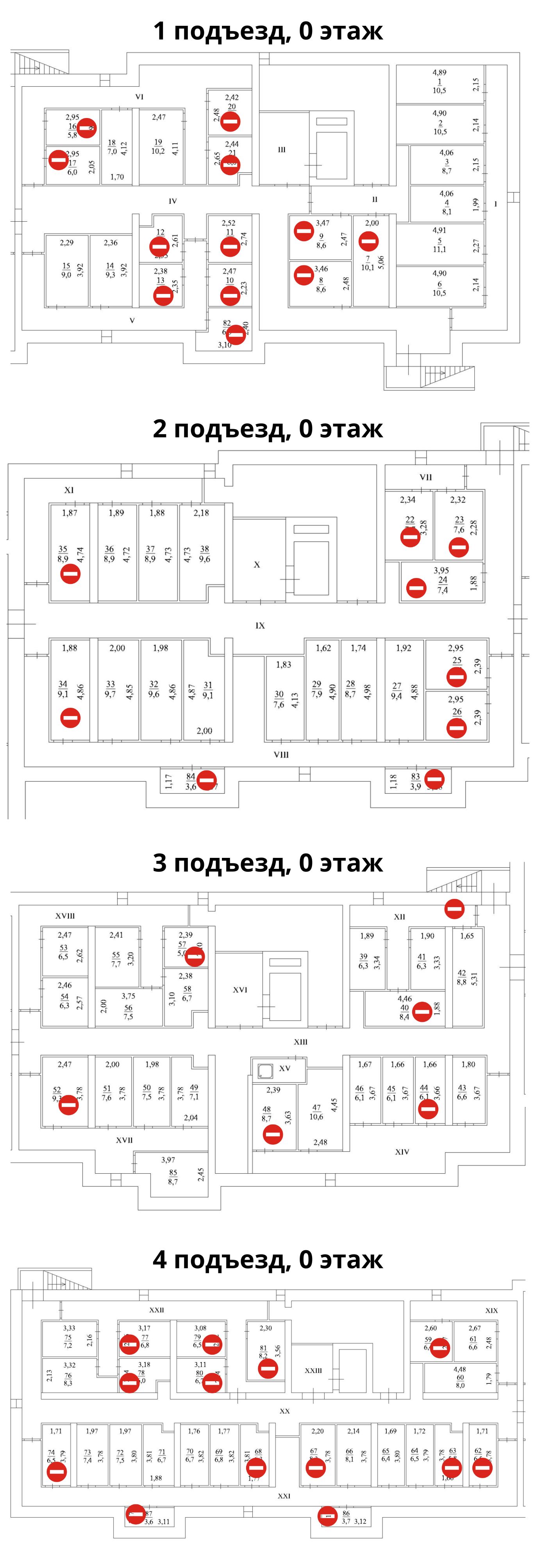 • пассажирские лифты спускаются в холл и поднимаются на каждый этаж, в том числе на первый и на -1 этаж, где располагаются кладовые;